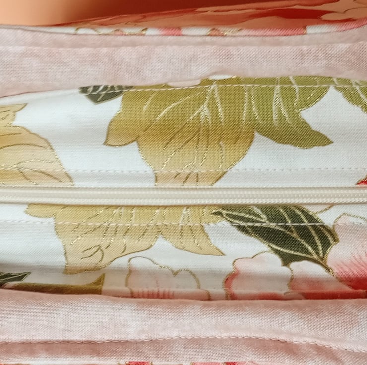 It is wadded for a soft feel, and has an inside pocket matching the main outer fabric. The inside lining is also in pink cotton.