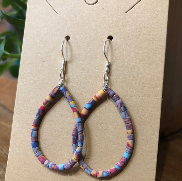 Sterling silver, hypoallergenic earrings. These earrings are made with tiny, multi-coloured clay beads - a lovely selection of pinks/purples/yellow/blue. They're a super cool addition to any outfit and would make great gifts.