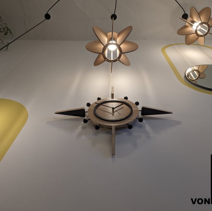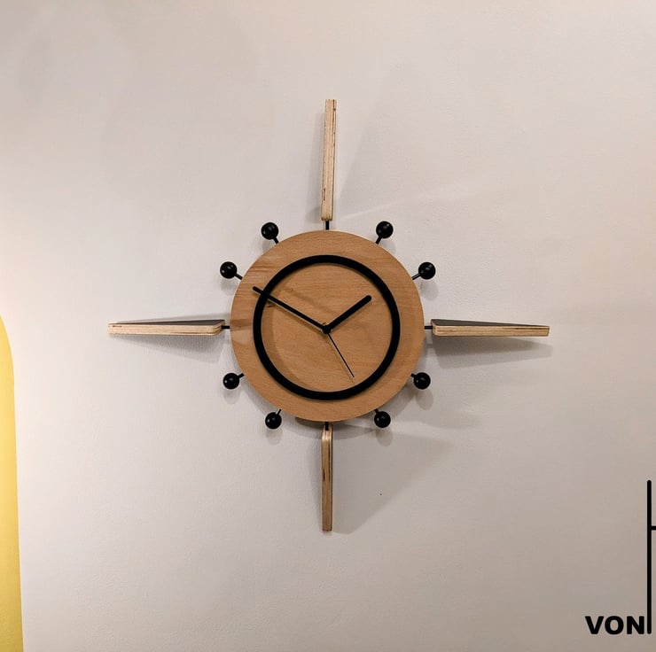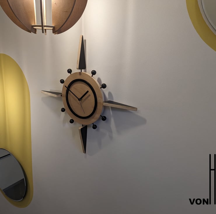 Handmade contemporary Mid-Century Modern style Starburst clock