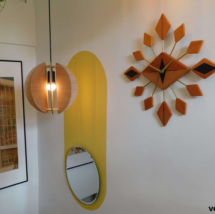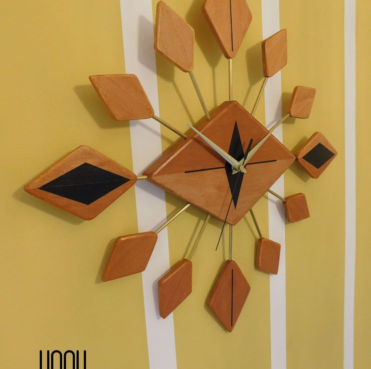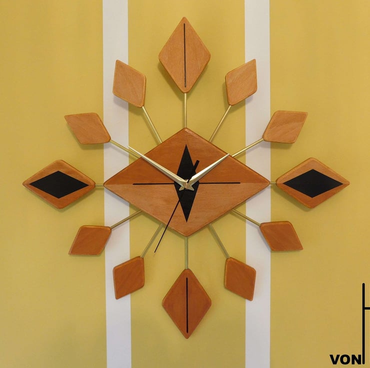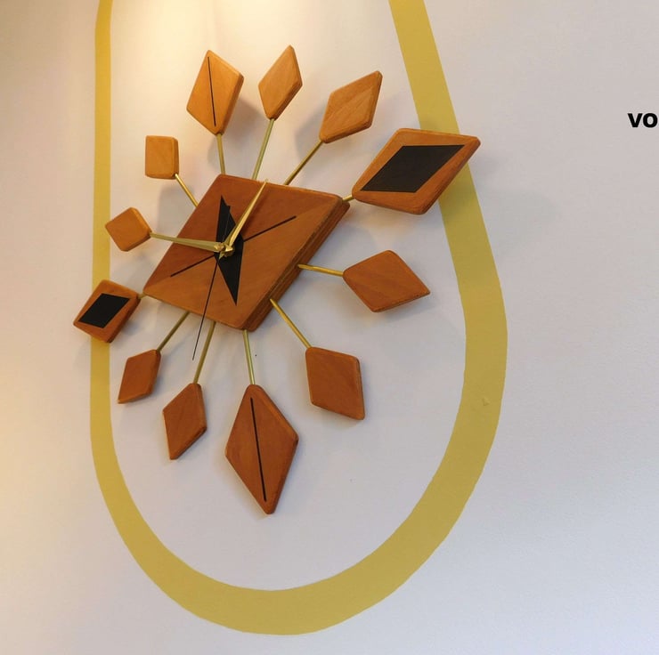Handmade Mid Century Modern style wall clock