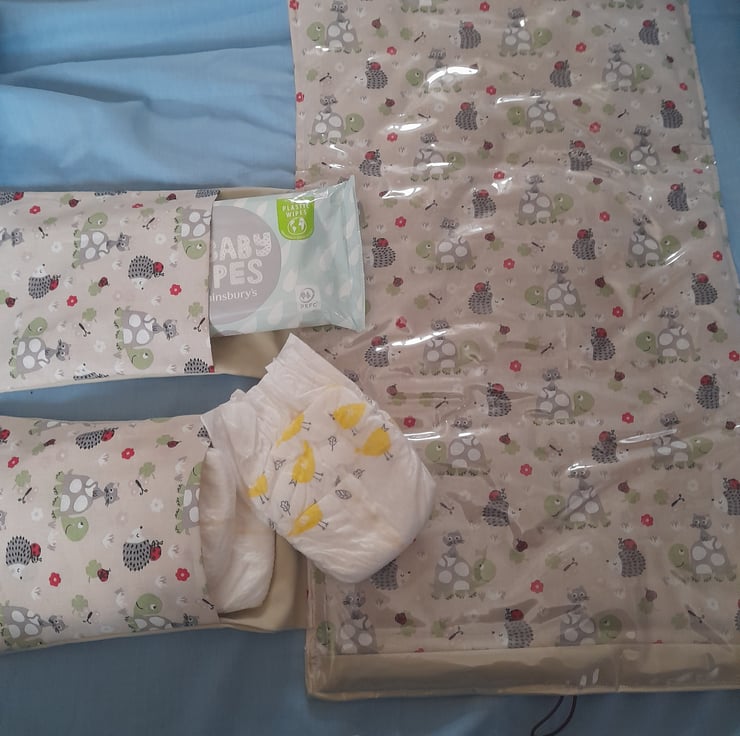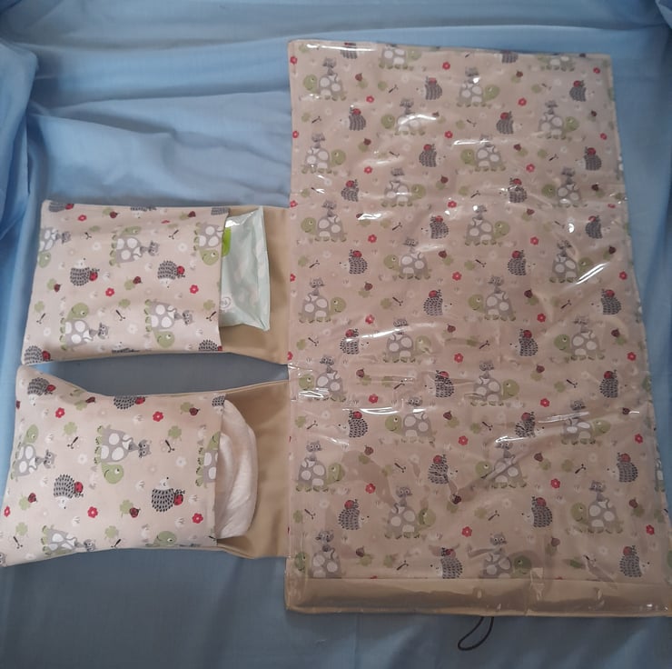 This travel changing mat is a handy way to carry everything that you need to change your baby when out and about and it all folds up into a handy little clutch.