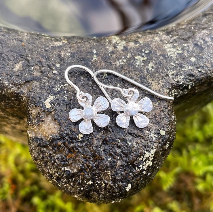 The flowers measure just over 1cm at their widest. The earrings hang 2cm total drop.