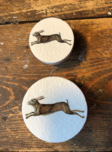 Here are my very popular leaping Hare animal design classy pine handles.
