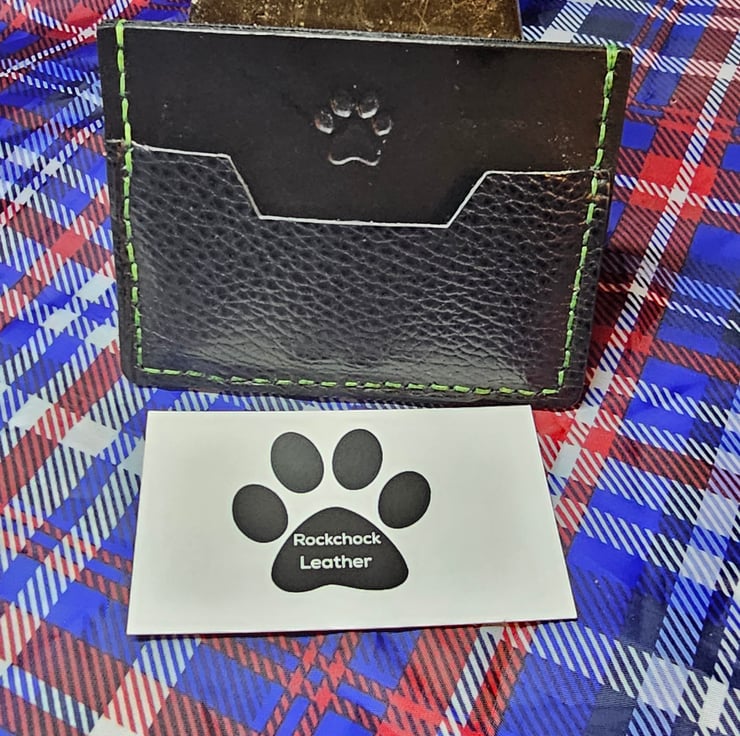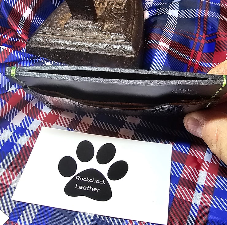 Handmade leather black leather minimalist wallet that holds 4 cards and space for some cash you have a choice of thread as well just ask . Free postage to the uk