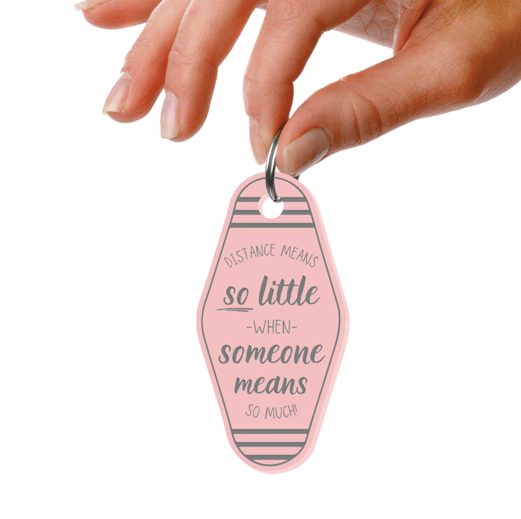 Bridge the gap and celebrate the enduring love in your long-distance relationship with our Keyring. Engraved with the heartwarming phrase, 'Distance Matters So Little When Someone Means So Much,' this acrylic keyring is the perfect reminder of your special connection, making it an ideal gift for couples navigating the challenges of being apart.