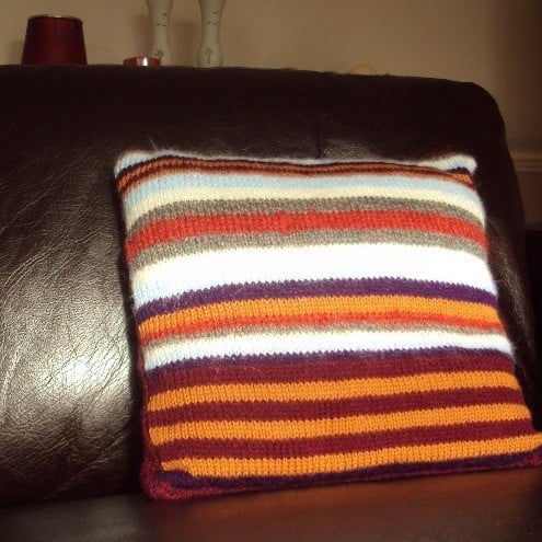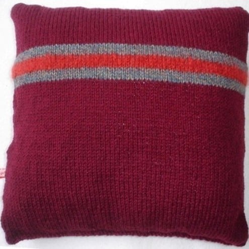 This beautiful striped cushion is handknitted in rich,earthy colours.Looks great in any setting!