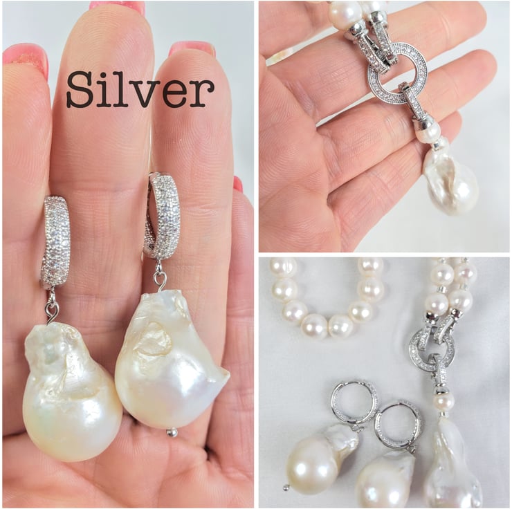 "Gold and "Silver" ones come with removable Baroque Pearl pendant.