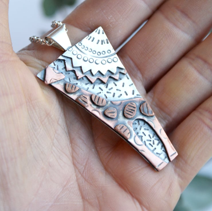 Love giraffes? Then this pendant is for you. Completely hand crafted from sterling silver and copper, this one of a kind necklace is made from hand cut pieces that are soldered together in layers. The giraffe and sun are textured and oxidised before being polished to a satin finish. Hung from an 18 inch sterling silver chain and presented in a recycled Kraft gift box embossed with my logo.