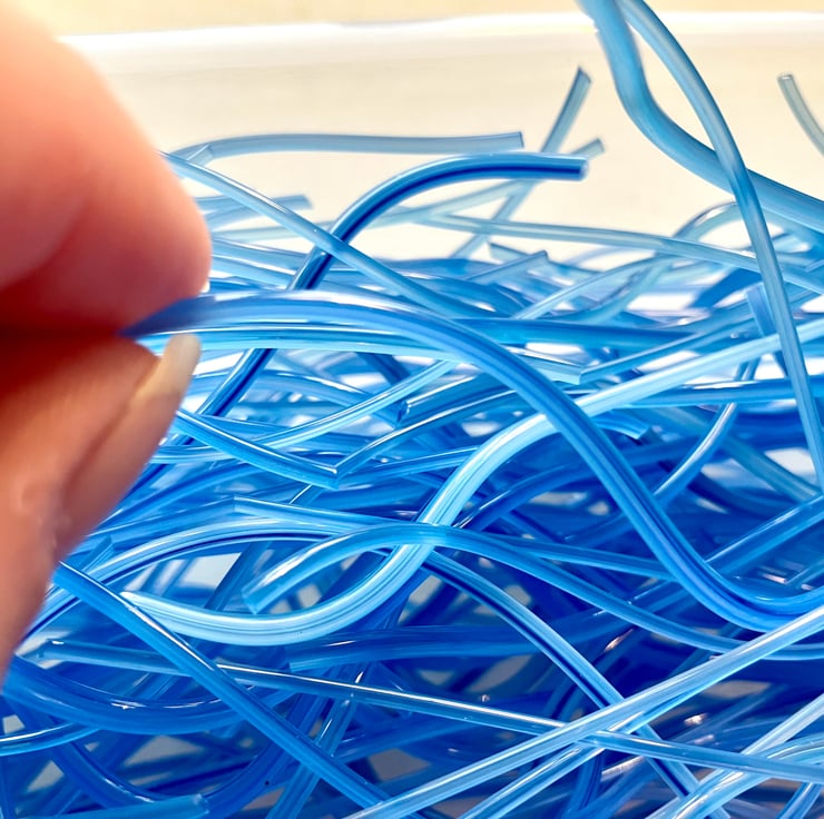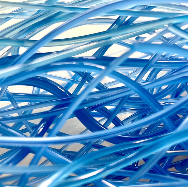 Streaky Blue Bullseye 90coe glass Vitrigraph stringers.
