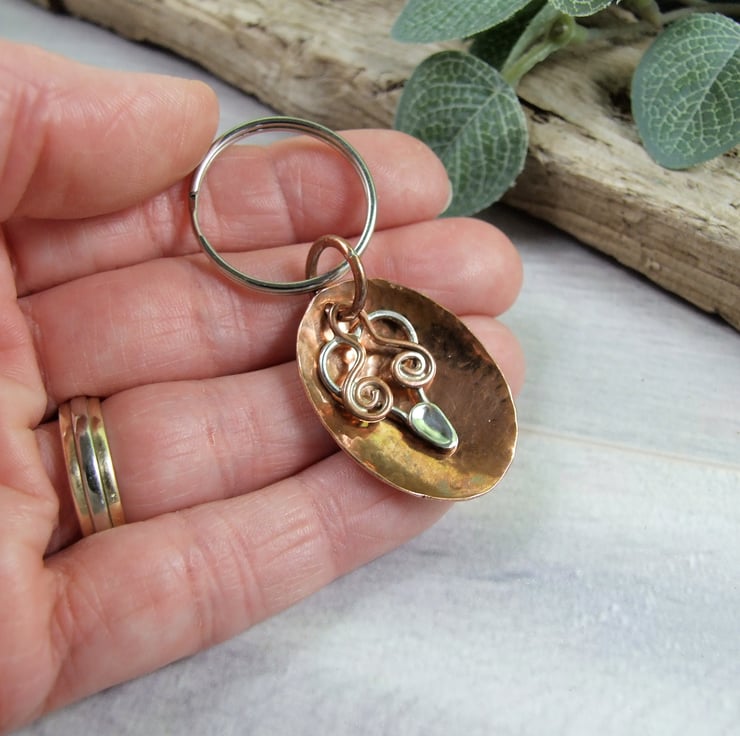Bag Charm. Love Spoon Copper and Sterling Silver Keyring. 7th Wedding Anniversary Gift. Can also be worn as a pendant necklace.