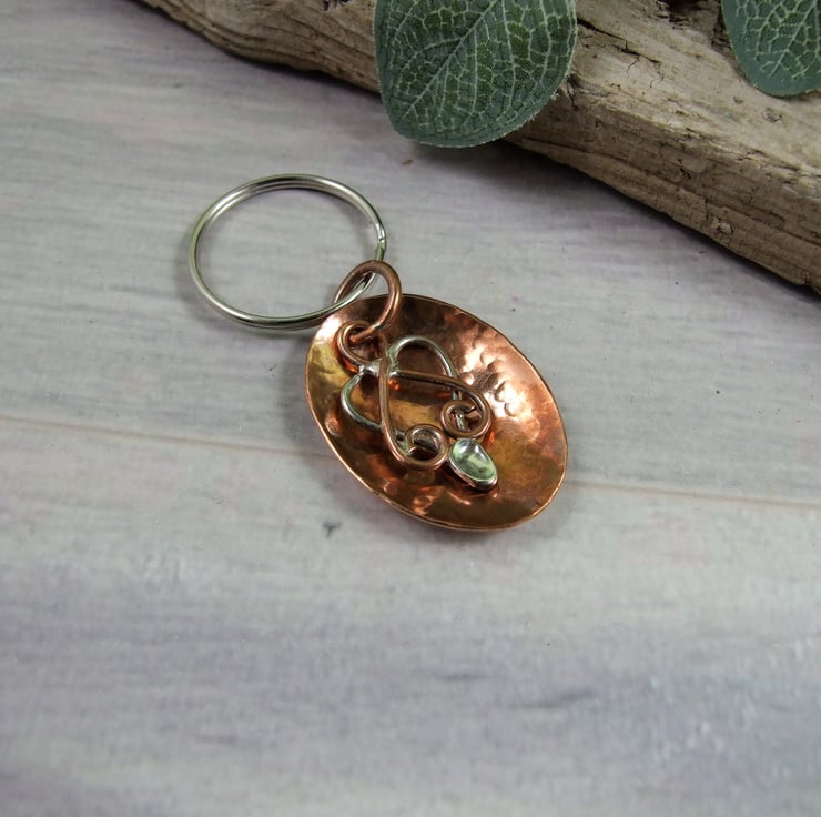 Keyring, Love Spoon in Copper and Sterling Silver Bag Charm. 7th Wedding Anniversary Gift. Can also be worn as a pendant necklace.