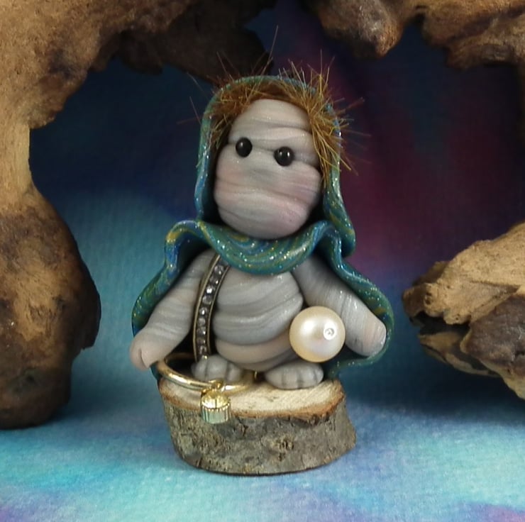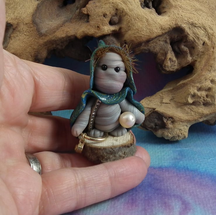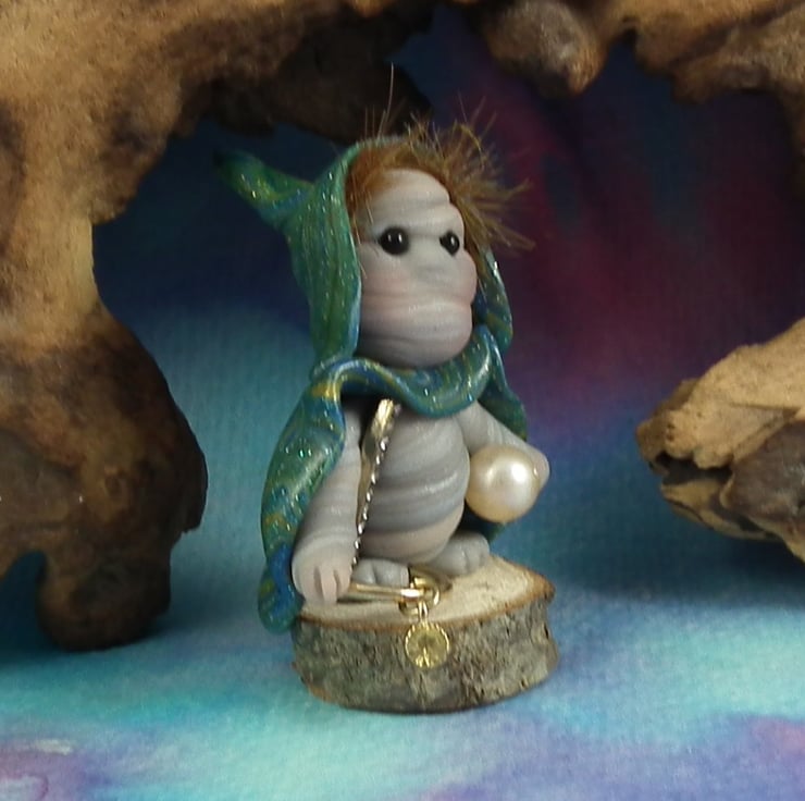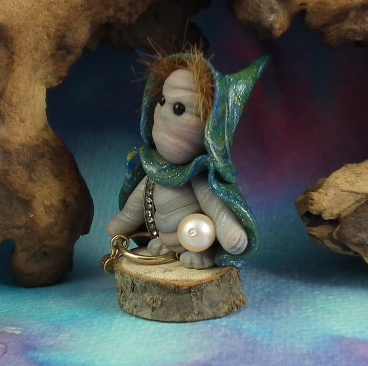 This is a 'one of a kind' creation having been entirely handmade without the use of moulds here at my studio on the Sussex Coast. Modelled with artist blend polymers, blushed before sealing with lacquer, Stum has sparkling black onyx eyes and a cache of blingles. Stum the Earth Troll is just two inches.