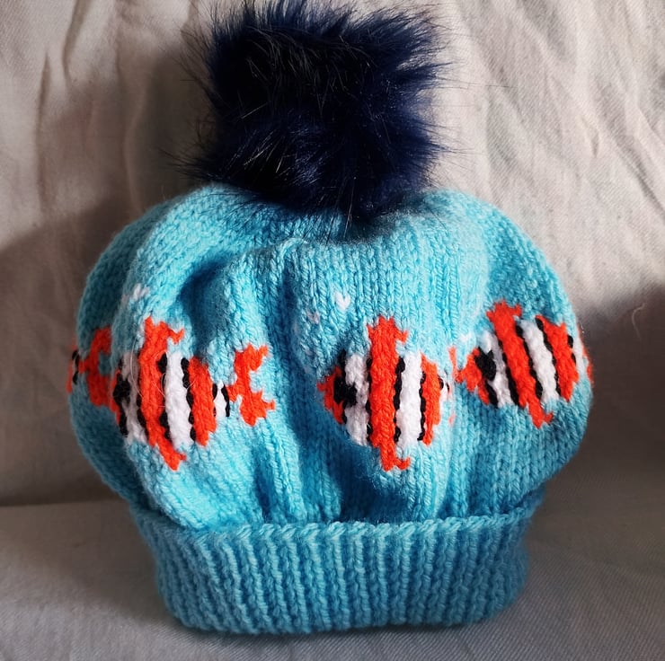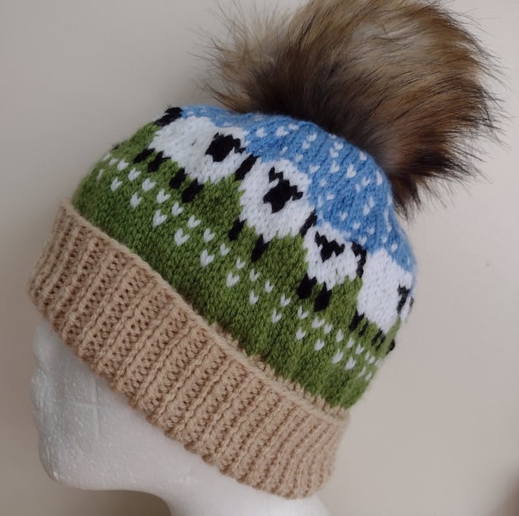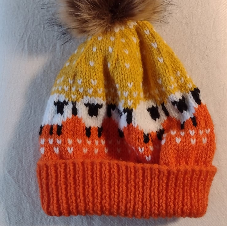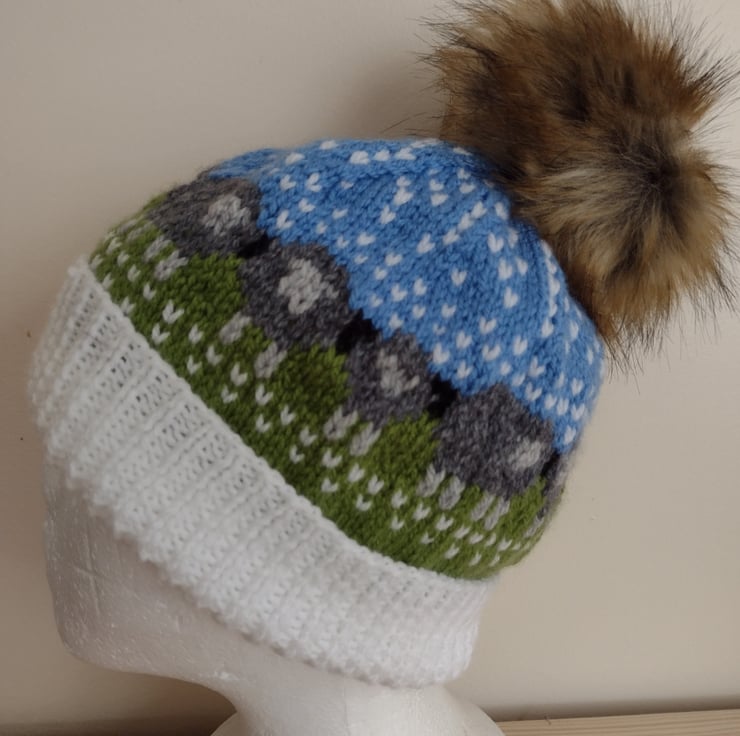 A circle of sheep ( and other creatures) pom-pom hat