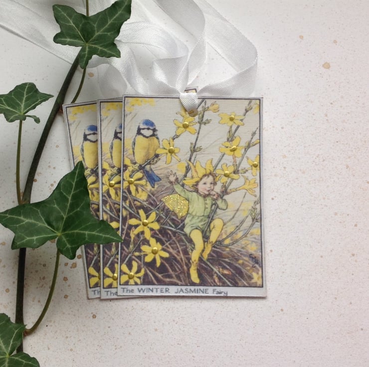 Lovely classic, vintage images of Flower Fairies. I have created and printed these images on to high quality linen-look (285gsm) card . Of course there has to some shimmer! and so I have added the necessary ink,glaze and glitter .Finished with lovely ,silky ,vintage -style ribbon !!