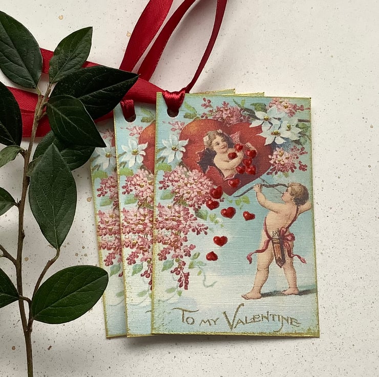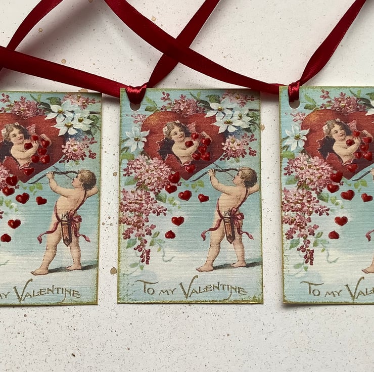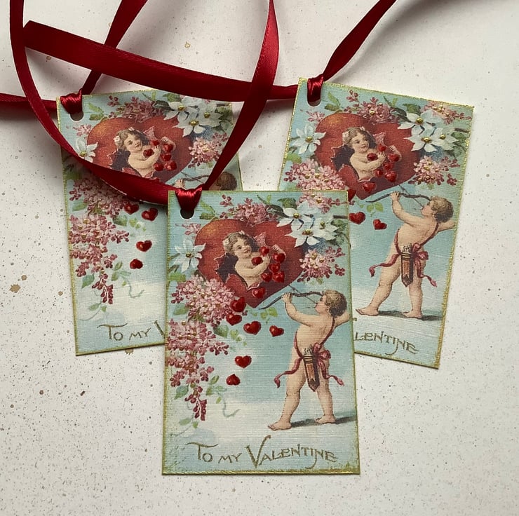 You will receive three tags of the same design ( as pictured ).... the sentiment reads 'To My Valentine '