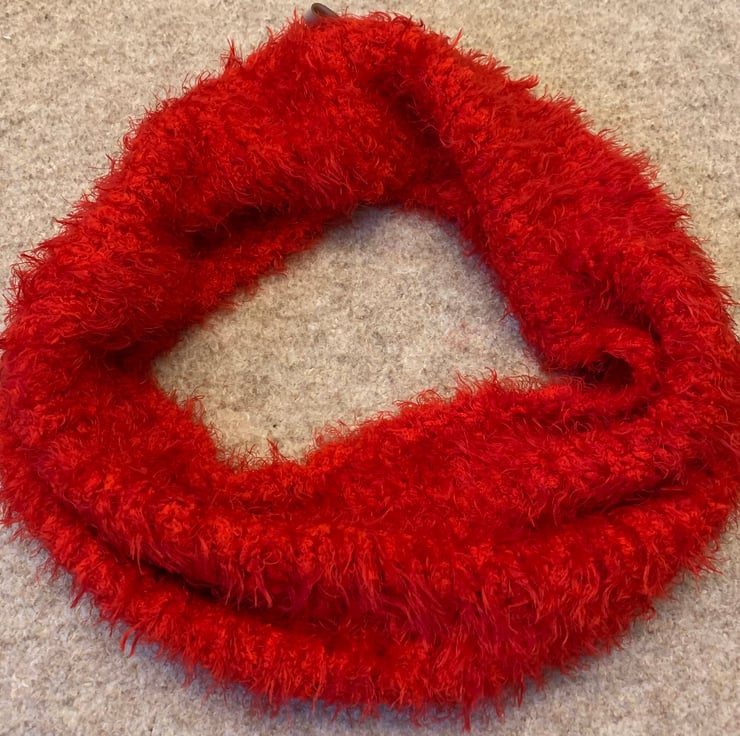A hand knitted super soft snood made with Sirdar Touch yarn. It is beautifully soft to the touch and lightweight which would make it the perfect accessory.