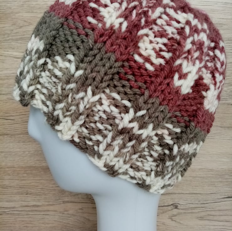 Hand-made Merino Fair Isle style stretch hats in an array of autumn/winter colours.