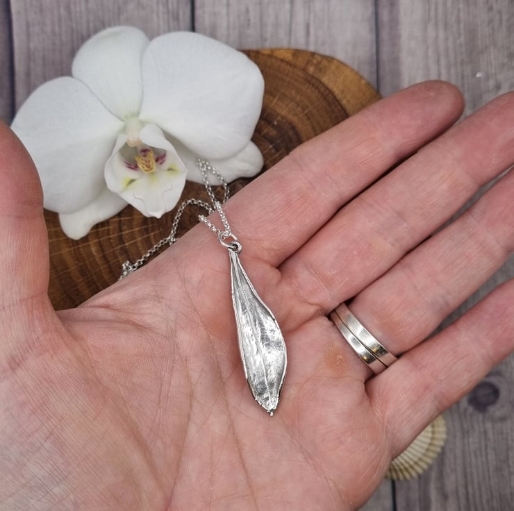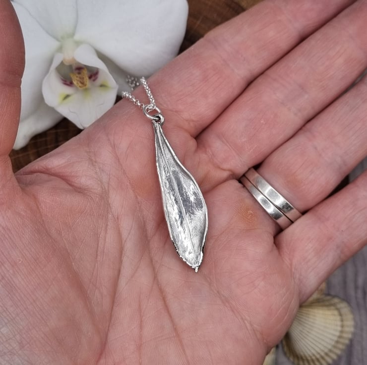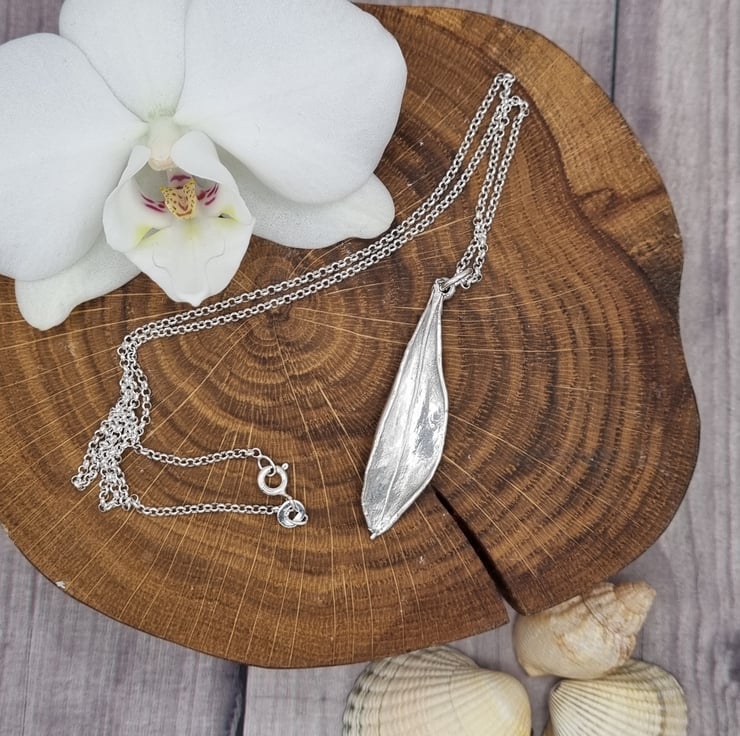 This lovely olive leaf measure approximately 4.2cm high and is supplied on an 18 inch sterling silver necklace chain, different styles and length of chain can be supplied on request, please message me for a quote.