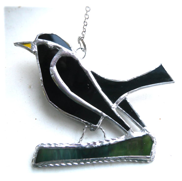 This is a very proud Blackbird. A male as it has a bright yellow beak. As I was drawing my pattern one was standing on the ground feeder and I asked it to turn to profile for me so I could better shape the tail.