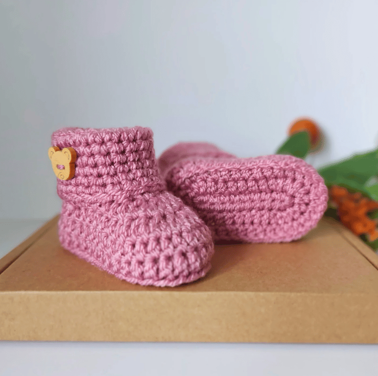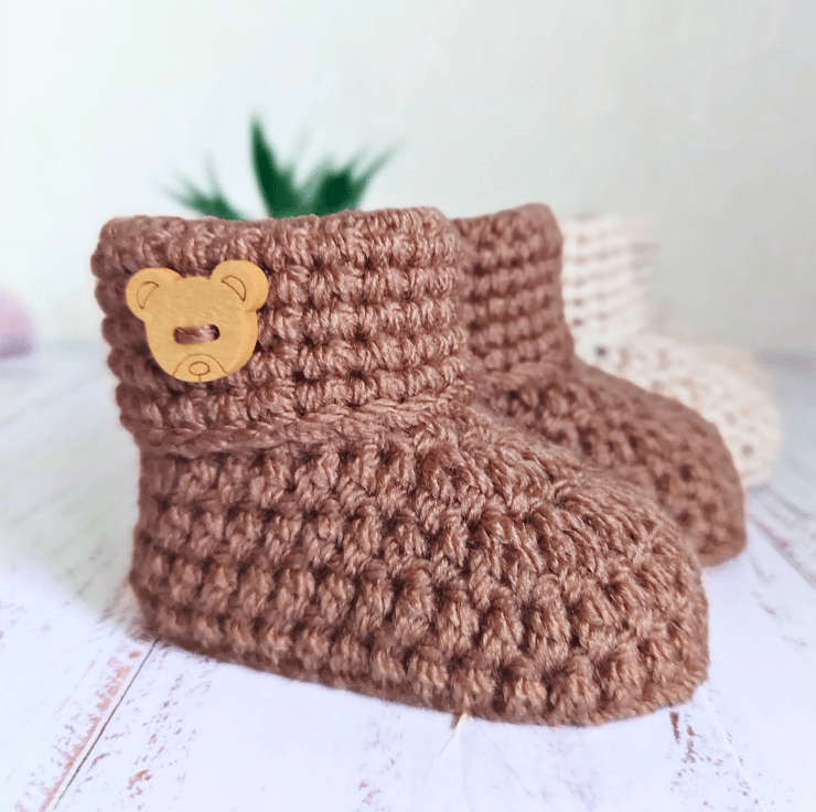 Crochet Baby Booties with Teddy Button – Handmade Gift for Baby Showers