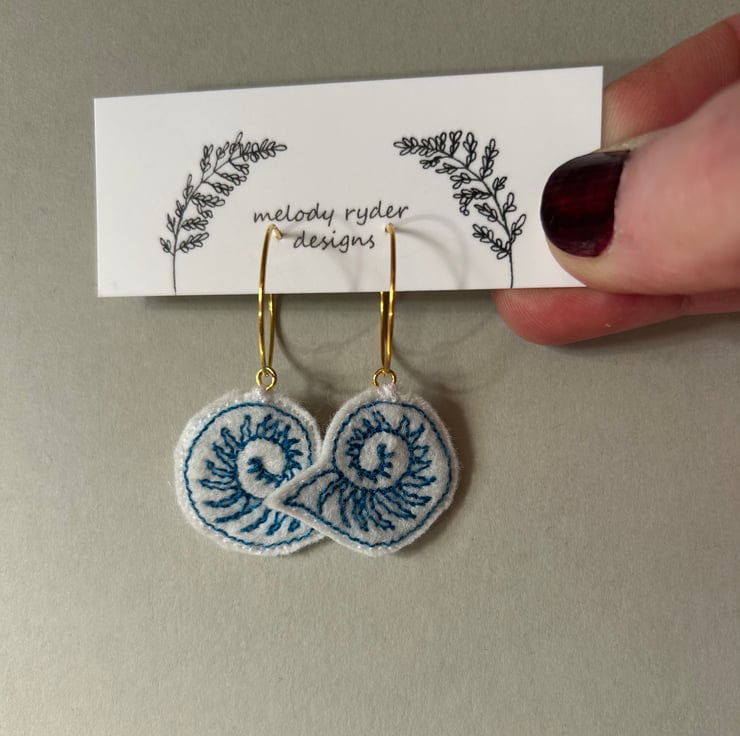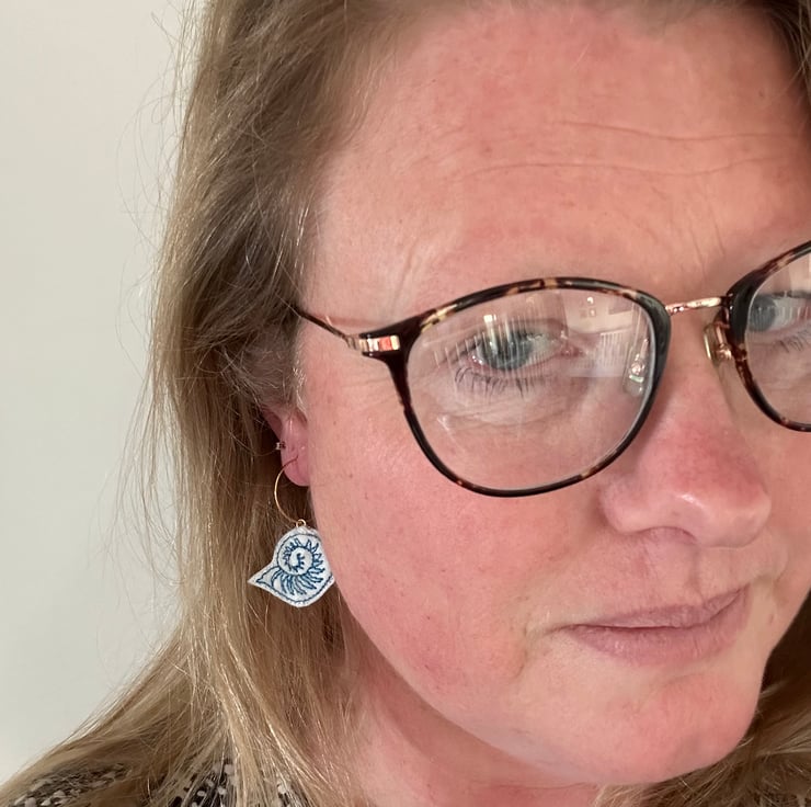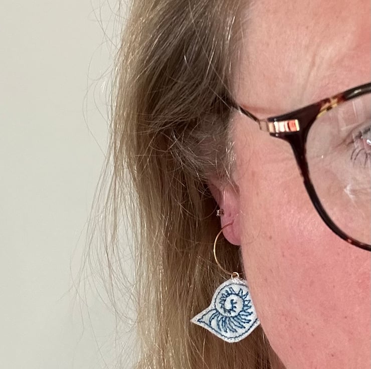 seashell (one) earrings embroidered onto felt using the colour thread of your choice.