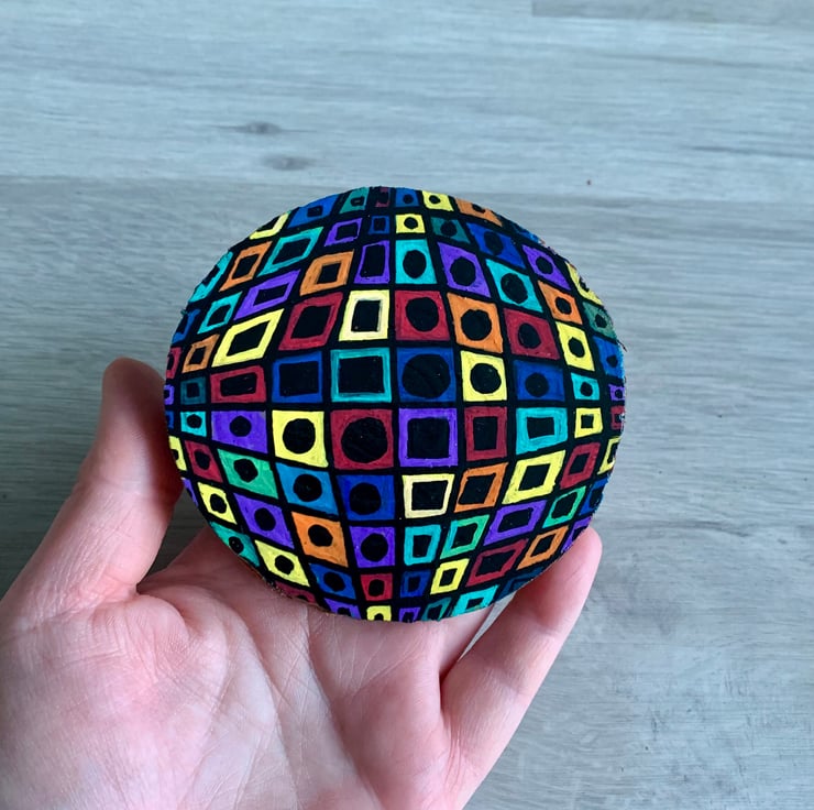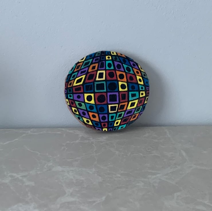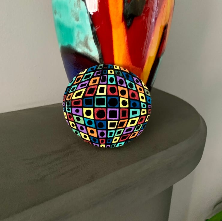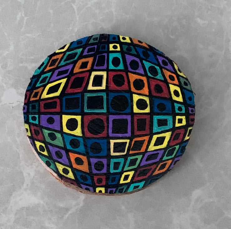 Optical illusion sphere, hand made acrylic painting on a Wood slice decoration/ wall hanging.