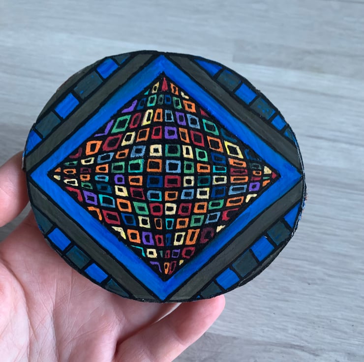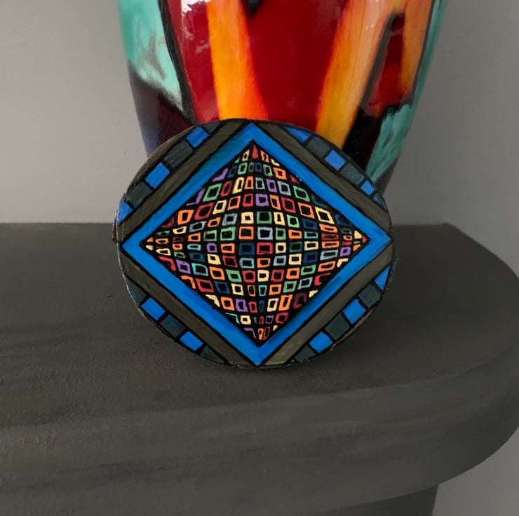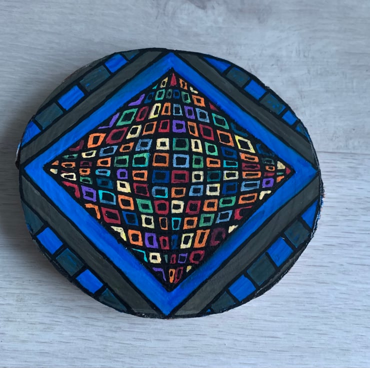 Op art diamond hand made acrylic painting on a Wood slice decoration/ wall hanging.