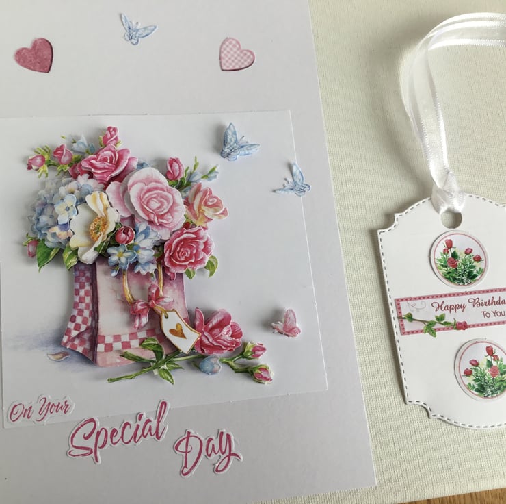 Birthday card and gift tag set. Birthday card. Birthday. Decoupage. CC820