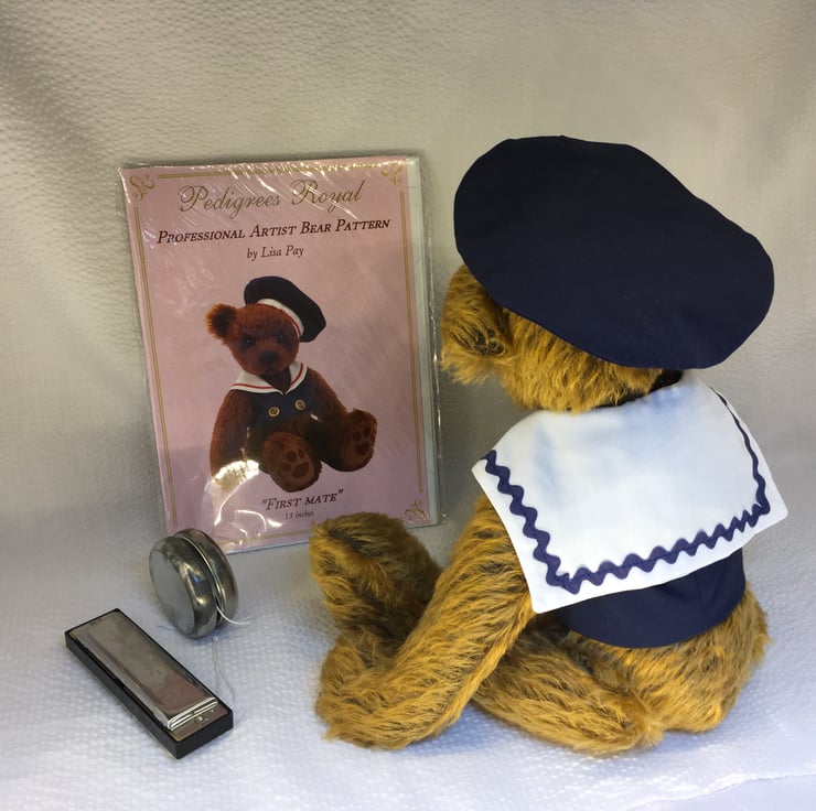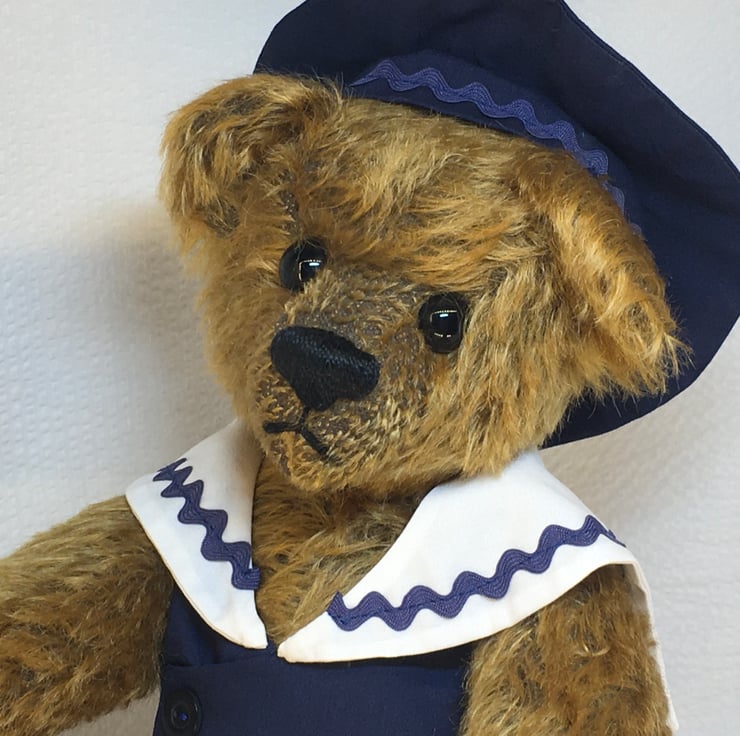 Dressed in his sailor’s jacket and cap, he comes with a muslin bag to keep him dust-free if stored, but he would rather be on parade with the rest of your hug.