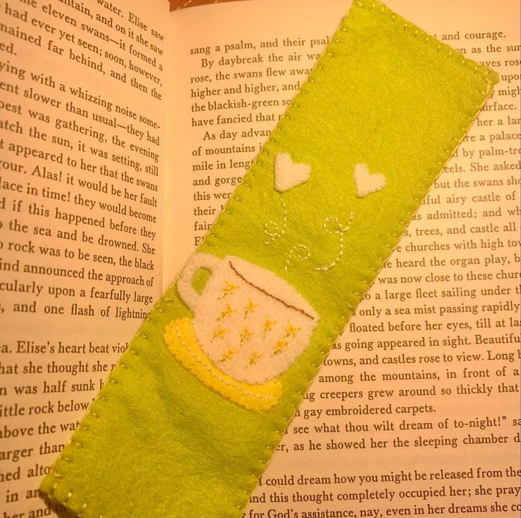 A felt embroidered bookmark to save your page! Embroidered with a teacup and saucer decorated with yellow spring flowers. Would make a lovely gift, an addition to a child’s party bag or a little gift to yourself!