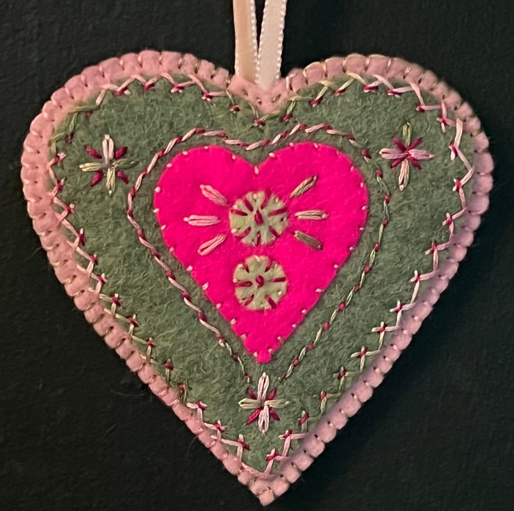 All of my makes are eco friendly and made to last from 100% wool felt and stuffed with washed wool fleece sourced from Yorkshire. I use DMC cotton thread to embroider folk patterns and stitches creating totally unique heirloom treasures.