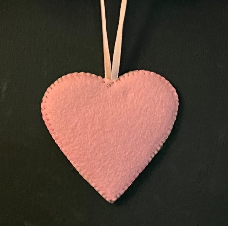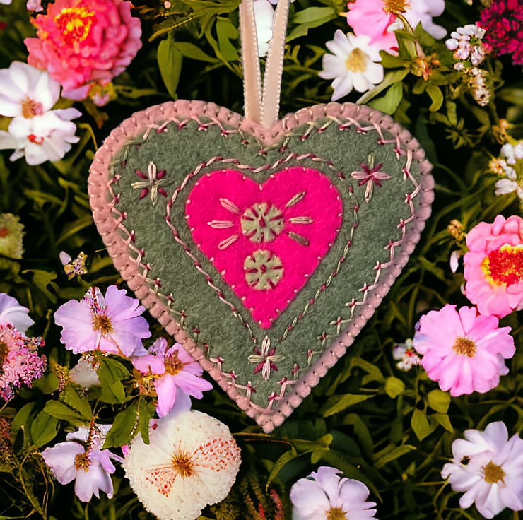 This beautiful pink and green felt hanging heart would make the perfect gift for a bridesmaid or flower girl .