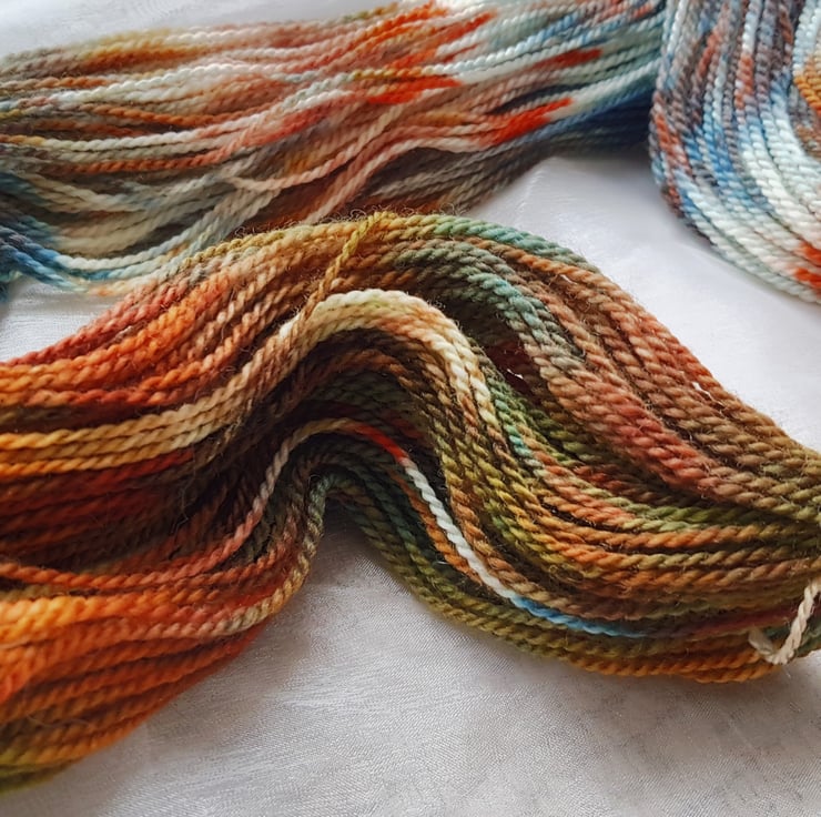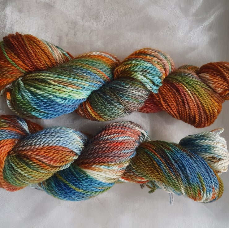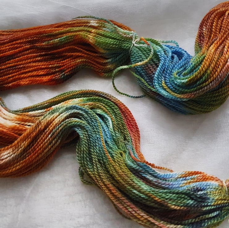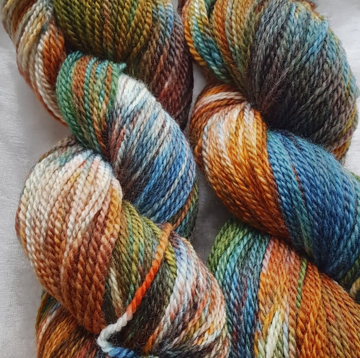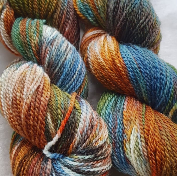 This yarn is a 100% superwash merino. It's a 4ply. Each skein listed is a 100g and about 288m . This yarn is super soft and squishy. This yarn is full of vibrant colours from golden yellows to deep blues . It's perfect for knitting, crocheting and weaving.