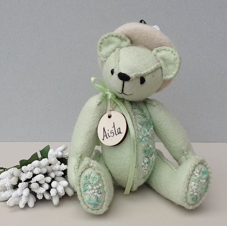 Meet Aisla, small 5.75" artist bear, hand sewn and embroidered design from my Signature range of adult collectable teddy bears.