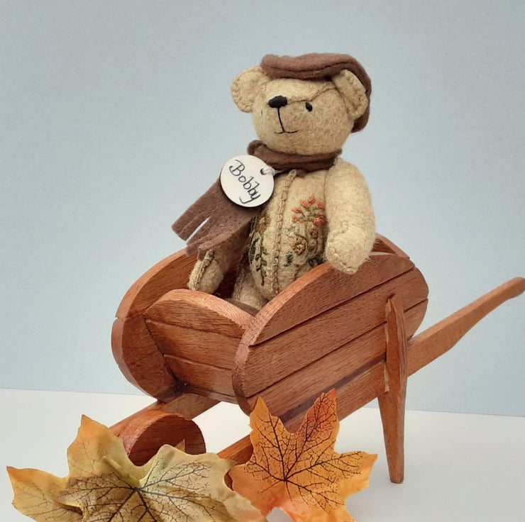 Meet Bobby small 5.75" artist bear, hand sewn and embroidered design from my Signature range of adult collectable teddy bears.