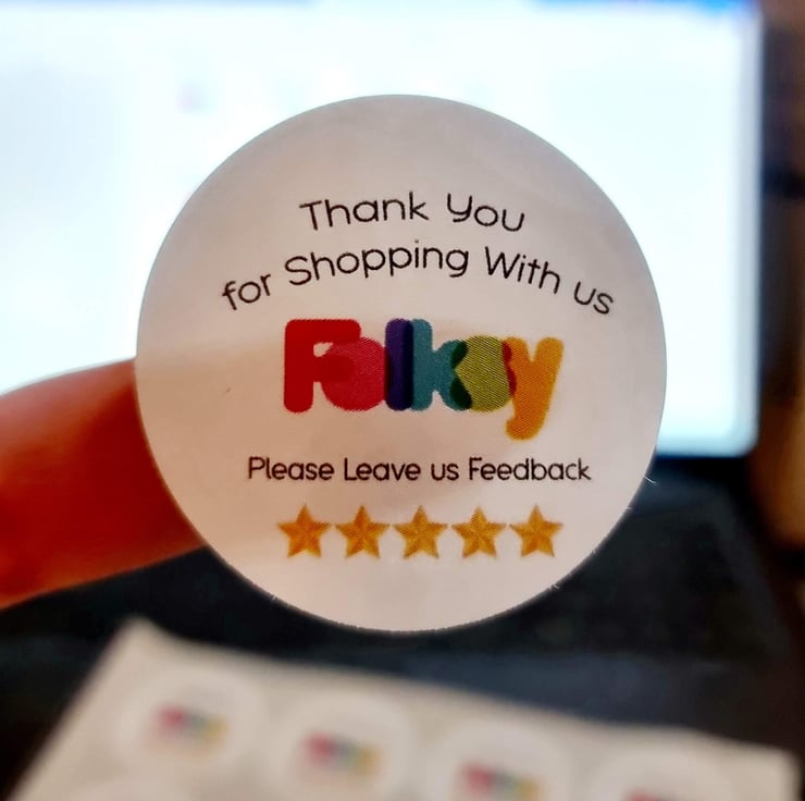 105 x FOLKSY Thank You For Shopping With Us SELF-ADHESIVE ROUND Labels 37mm Matt