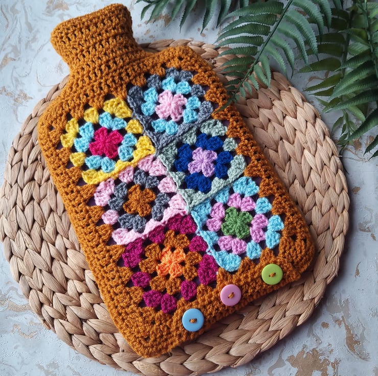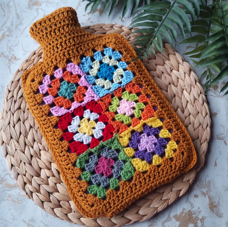Each granny square is different meaning that every cover will be different too, so your hot bottle cover will be unique to you!