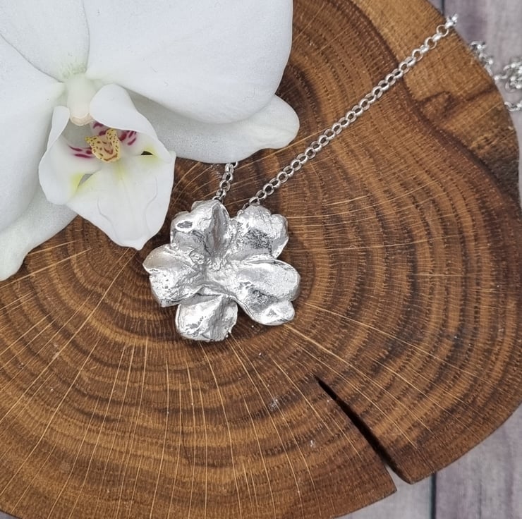 This sweet primrose flower measures approximately 2.5cm high and is supplied on an 18 inch sterling silver necklace chain, different styles and length of chain can be supplied on request, please message me for a quote.
