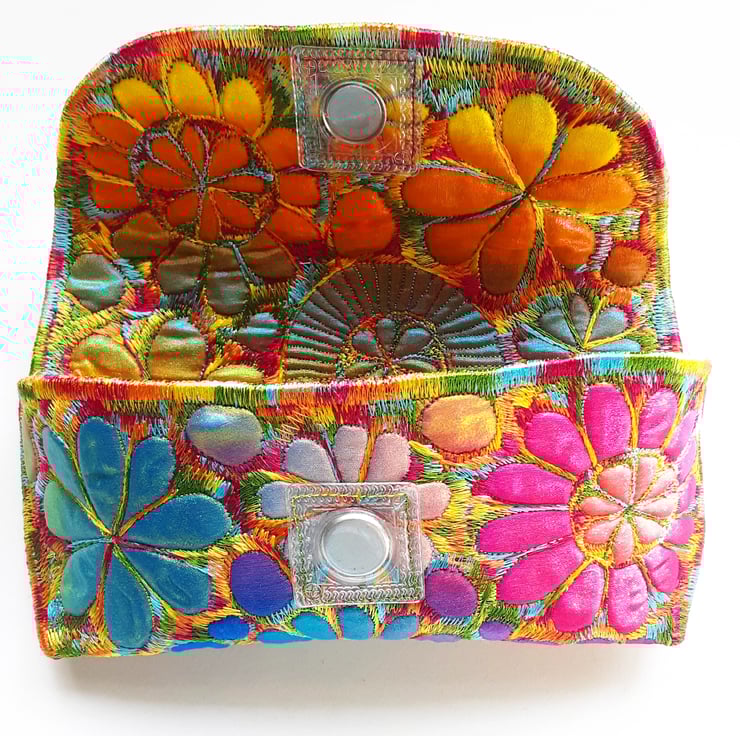 Made from layers of fabric including hand dyed Egyptian cotton an d silk fabrics using the free machine embroidery.