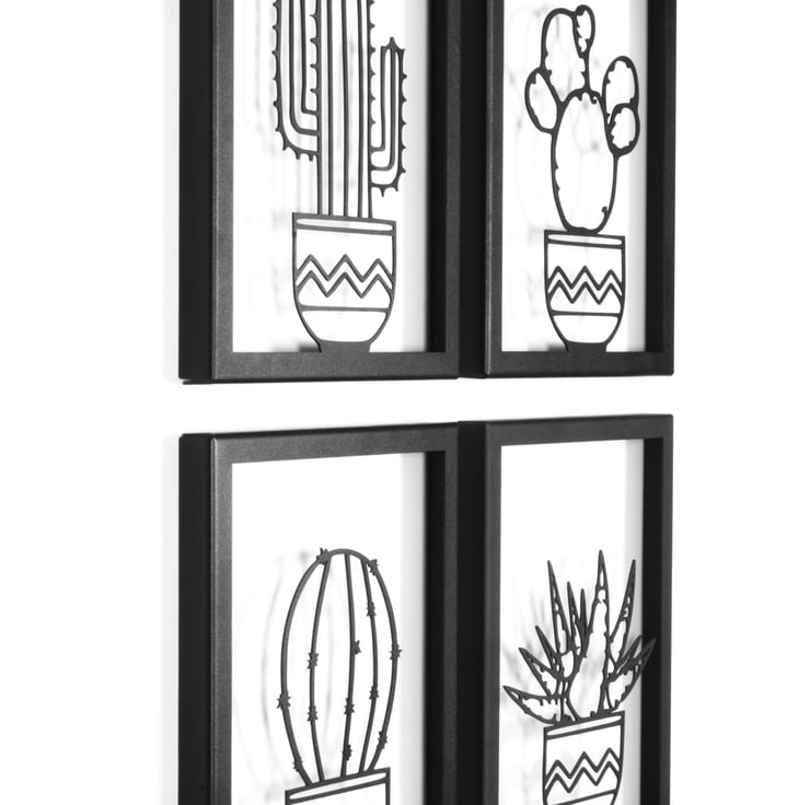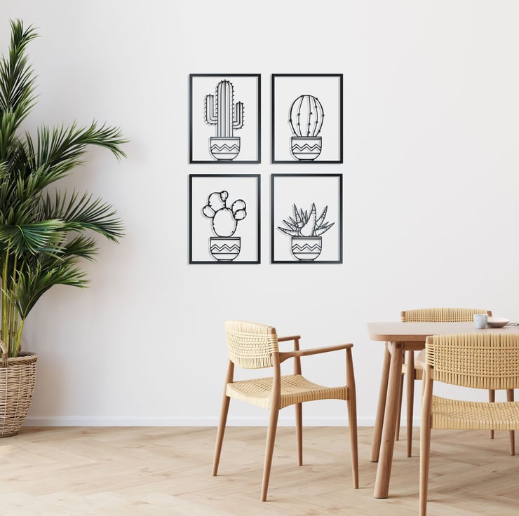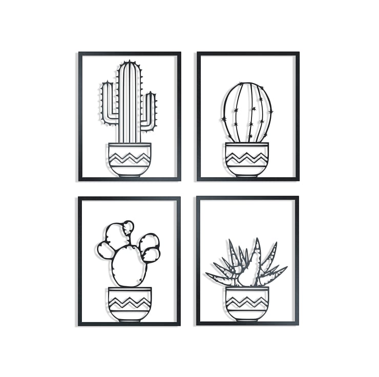 This product is perfect for any room or garden. The set of 4 Cactus in pots is a contemporary piece of wall art that enriches any living space. A perfect gift to yourself or others. Arrange in many different layouts to create a unique piece of wall art decoration.