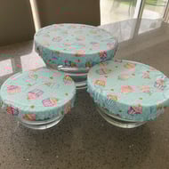 Reusable cotton bamboo face wipes, 100% patterned cotton with white bamboo towelling on reverse. Five wipes in each pack.