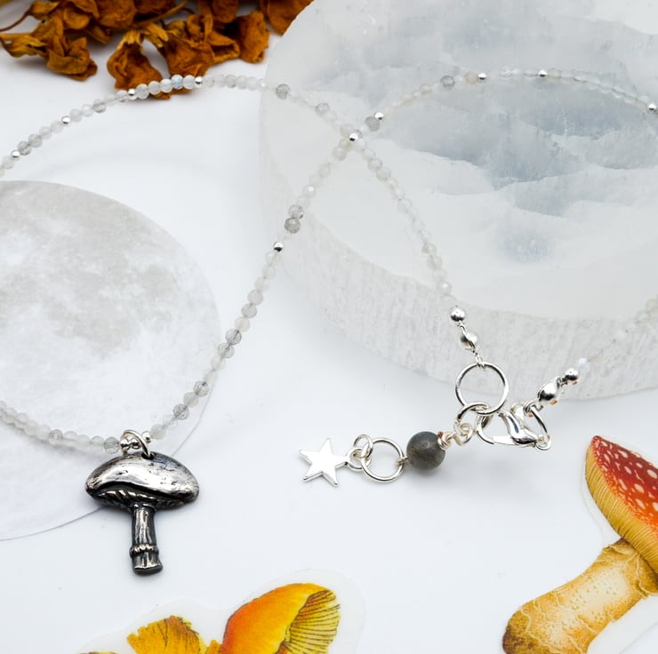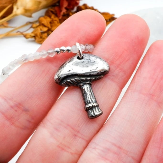 This necklace is one of a kind! It features a hand-cast solid fine recycled silver mushroom charm pendant.