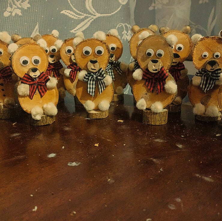 I live nearby the wood,when I go for a walk with the dog, we go through a forest, there are still fallen trees, I take the pieces of wood and that's how I make these figurines.