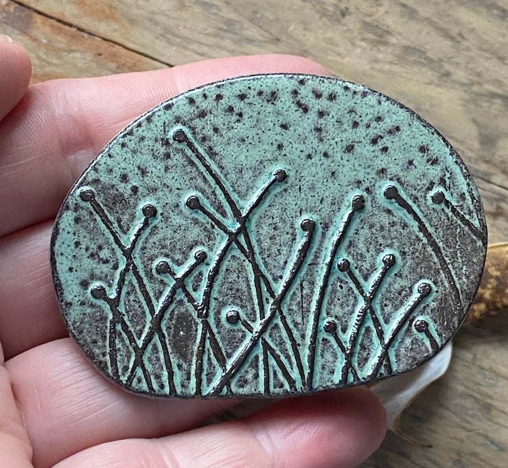 Hand crafted from Earthenware clay and twice fired these pretty brooches are fitted with high quality safety pins and stamped with the MB makers mark on the reverse.