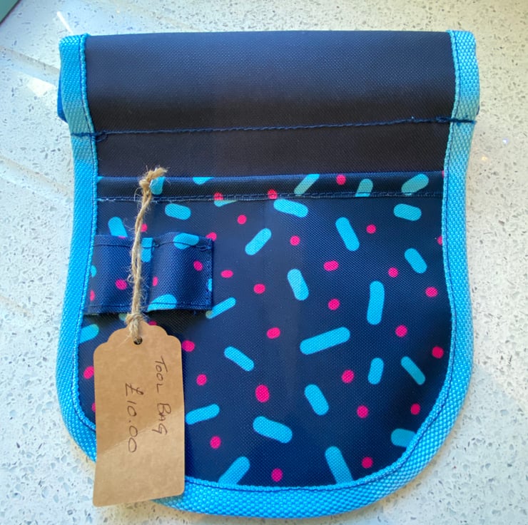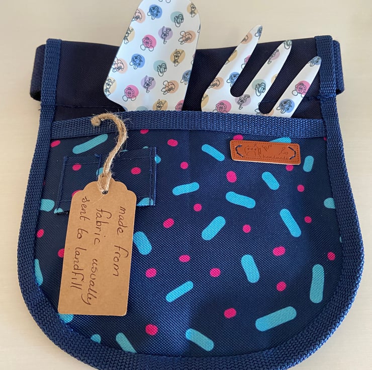 I hate waste and refused to send my offcuts to landfill, being nylon and rubber backed it would take decades to rot and is detrimental to our environment . No matter how small an off cut I try to find a use for it. I love gardening so thought about items I find useful when I'm outside and came up with multi purpose bags and tool belts.