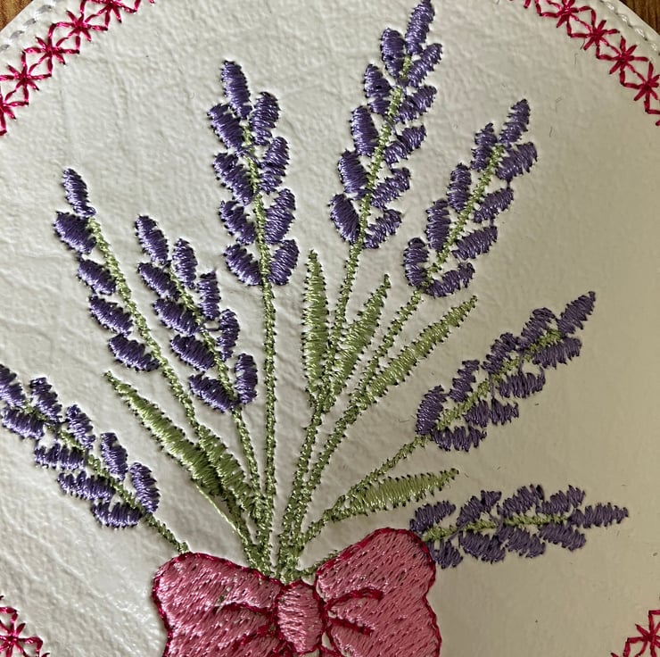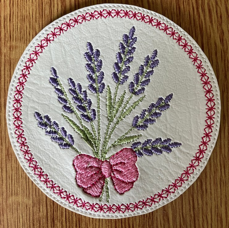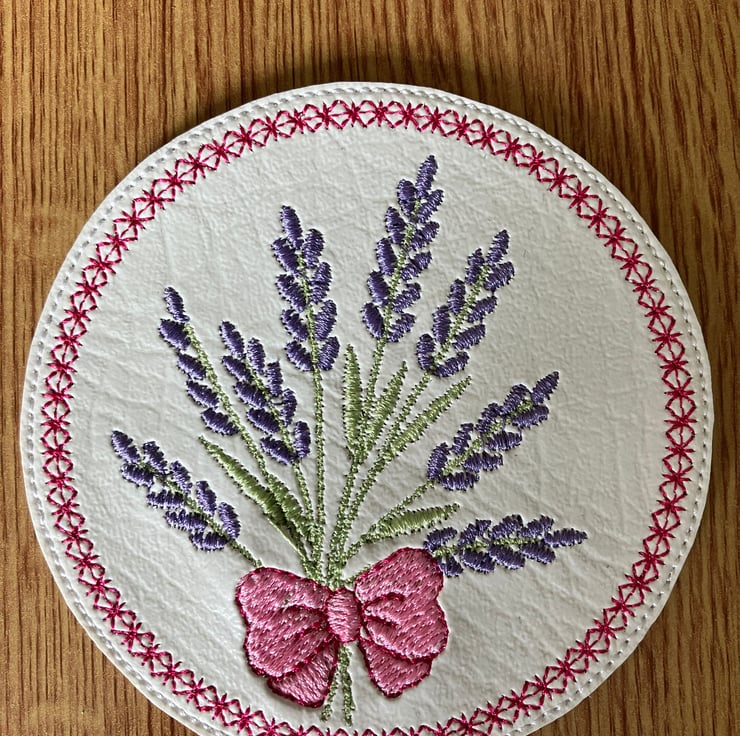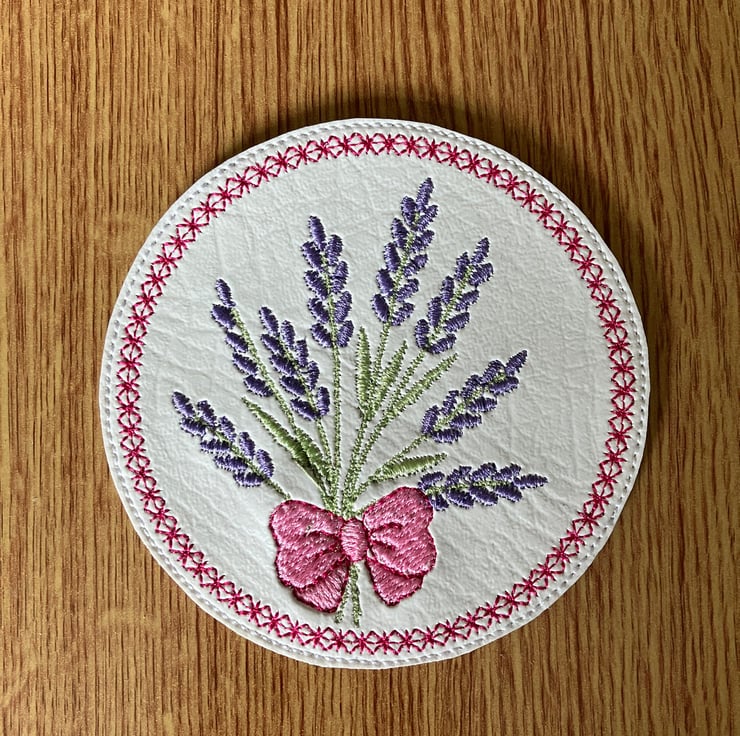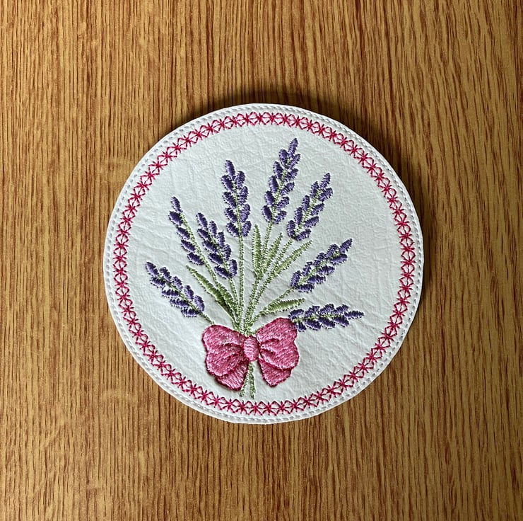 Lilac bouquet coaster made from vinyl and backed with felt.
