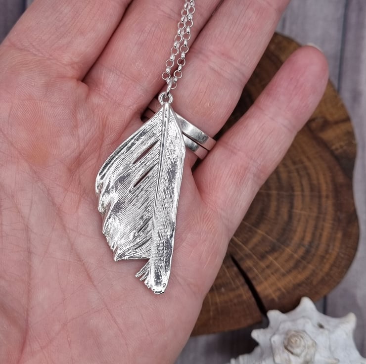 This lovely feather measures approximately 5cm long and is supplied on an 18 inch sterling silver necklace chain, different styles and length of chain can be supplied on request, please message me for a quote.