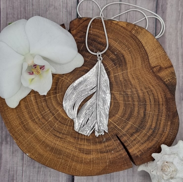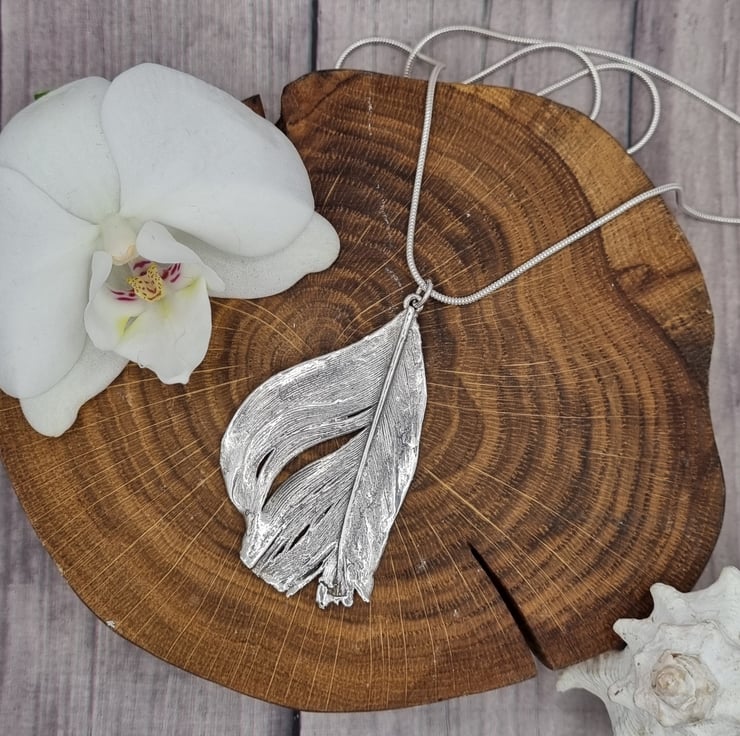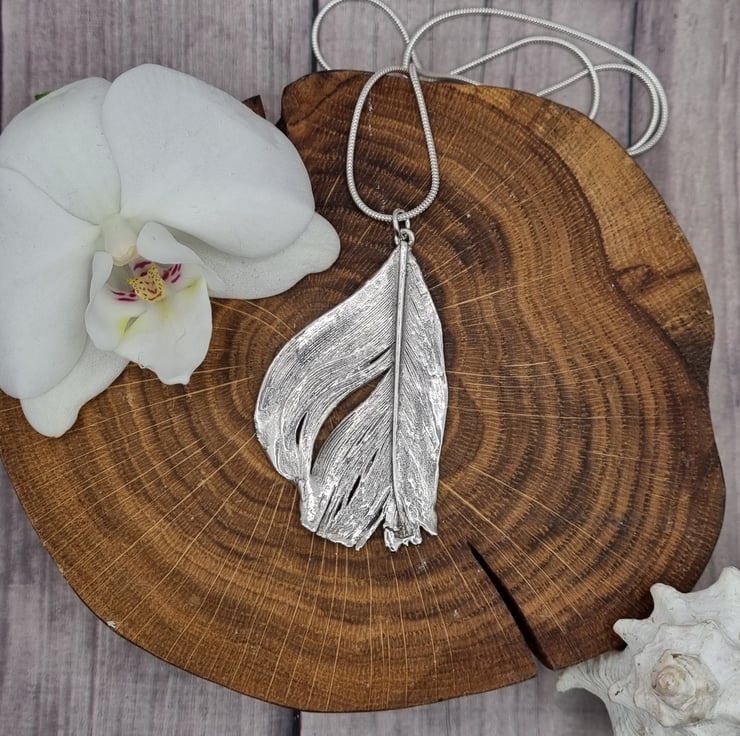 This lovely feather measures approximately 6cm long and is supplied on an 18 inch sterling silver necklace chain, different styles and length of chain can be supplied on request, please message me for a quote.