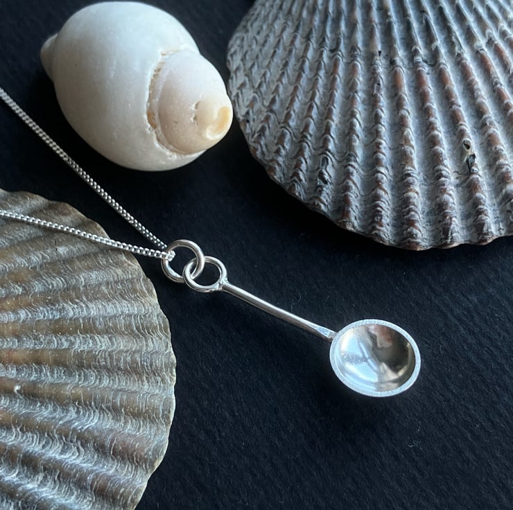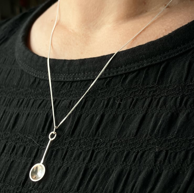Sterling silver spoon pendant on a sterling silver chain. Beautiful, simple statement necklace.