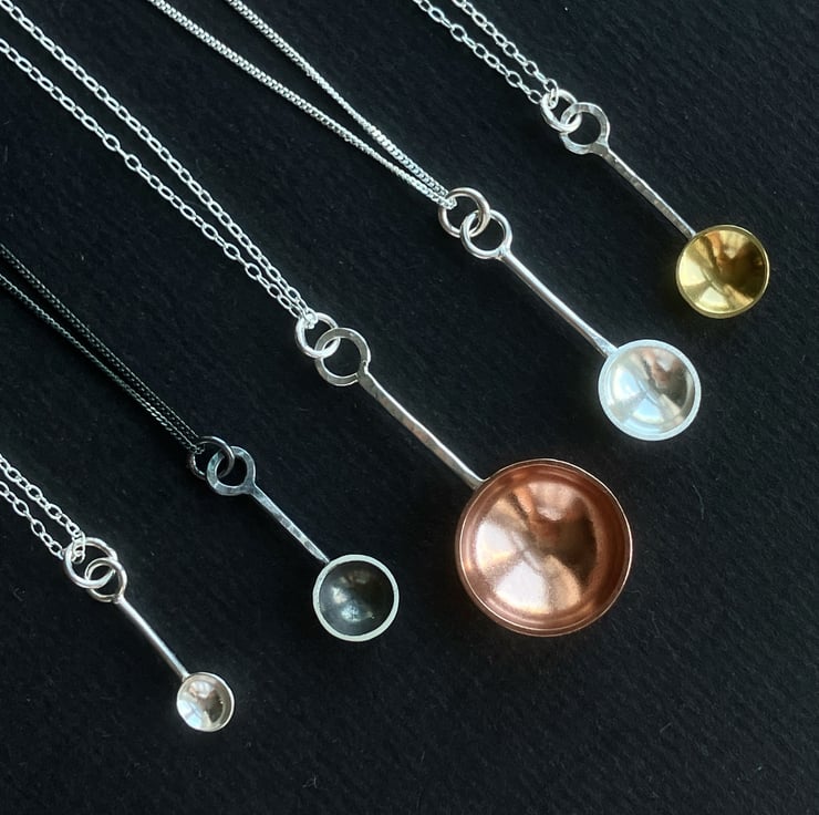My spoon pendants and abstract spoon pendants are all inspired by my collection of spoons. I create all of my spoon jewellery from silver wire and sheet, hand formed and soldered together.